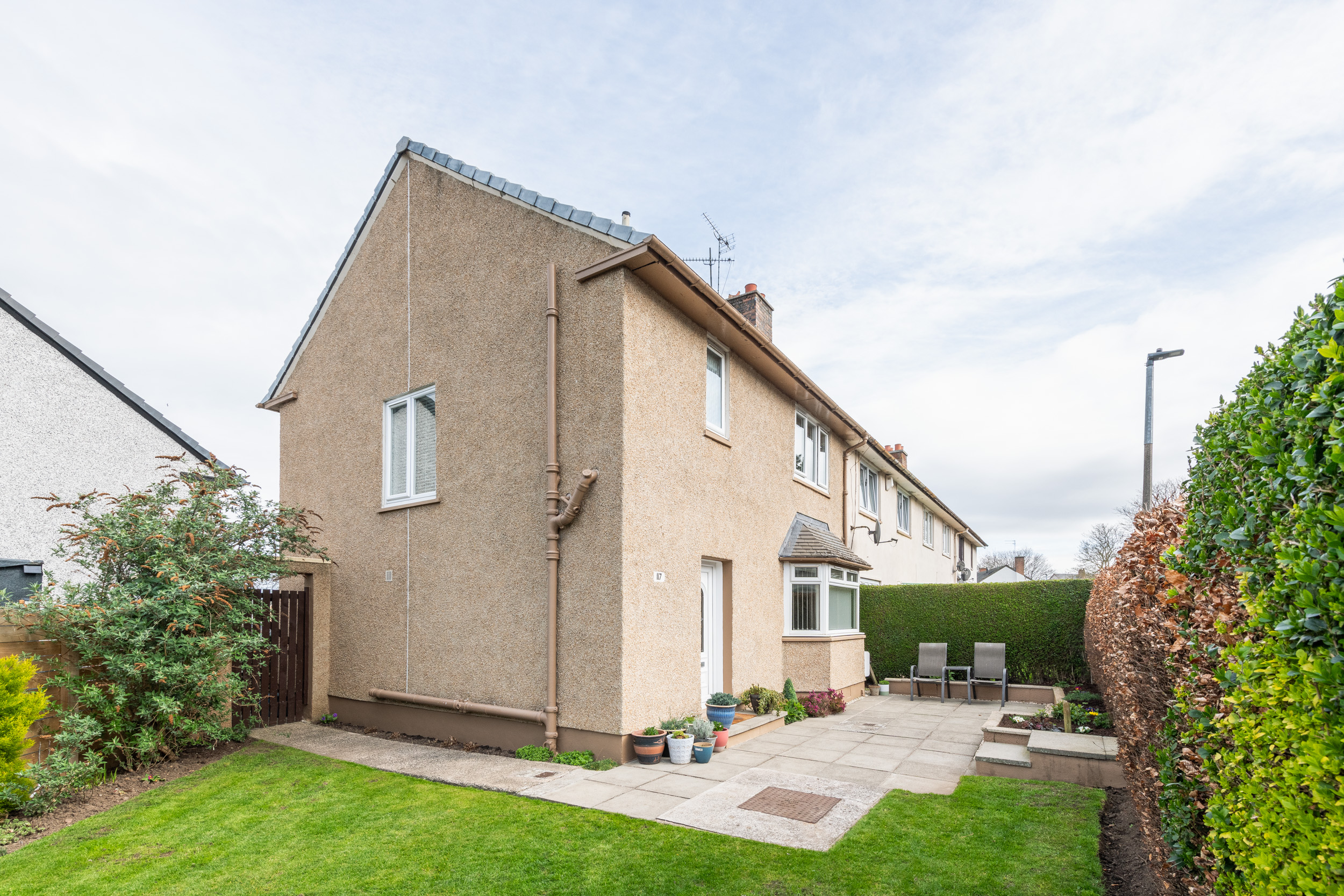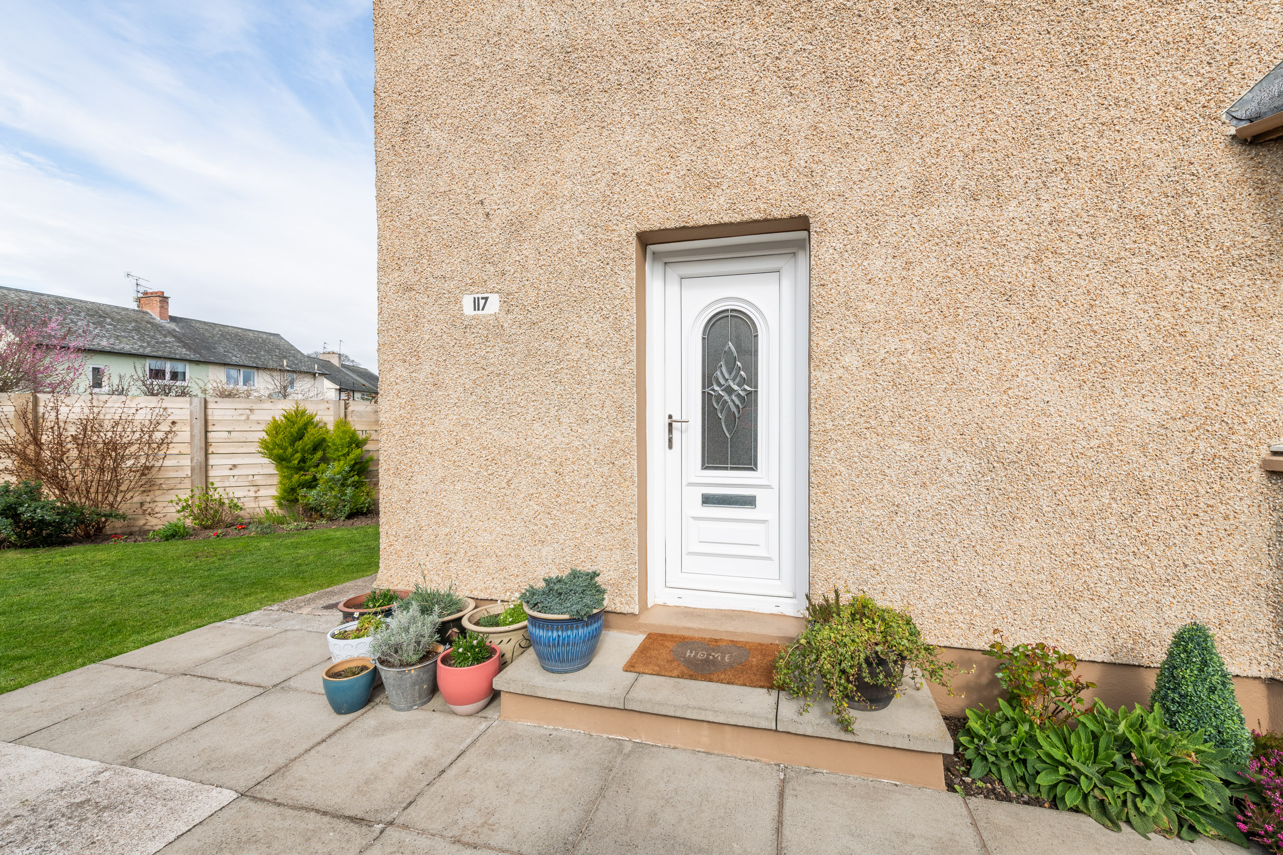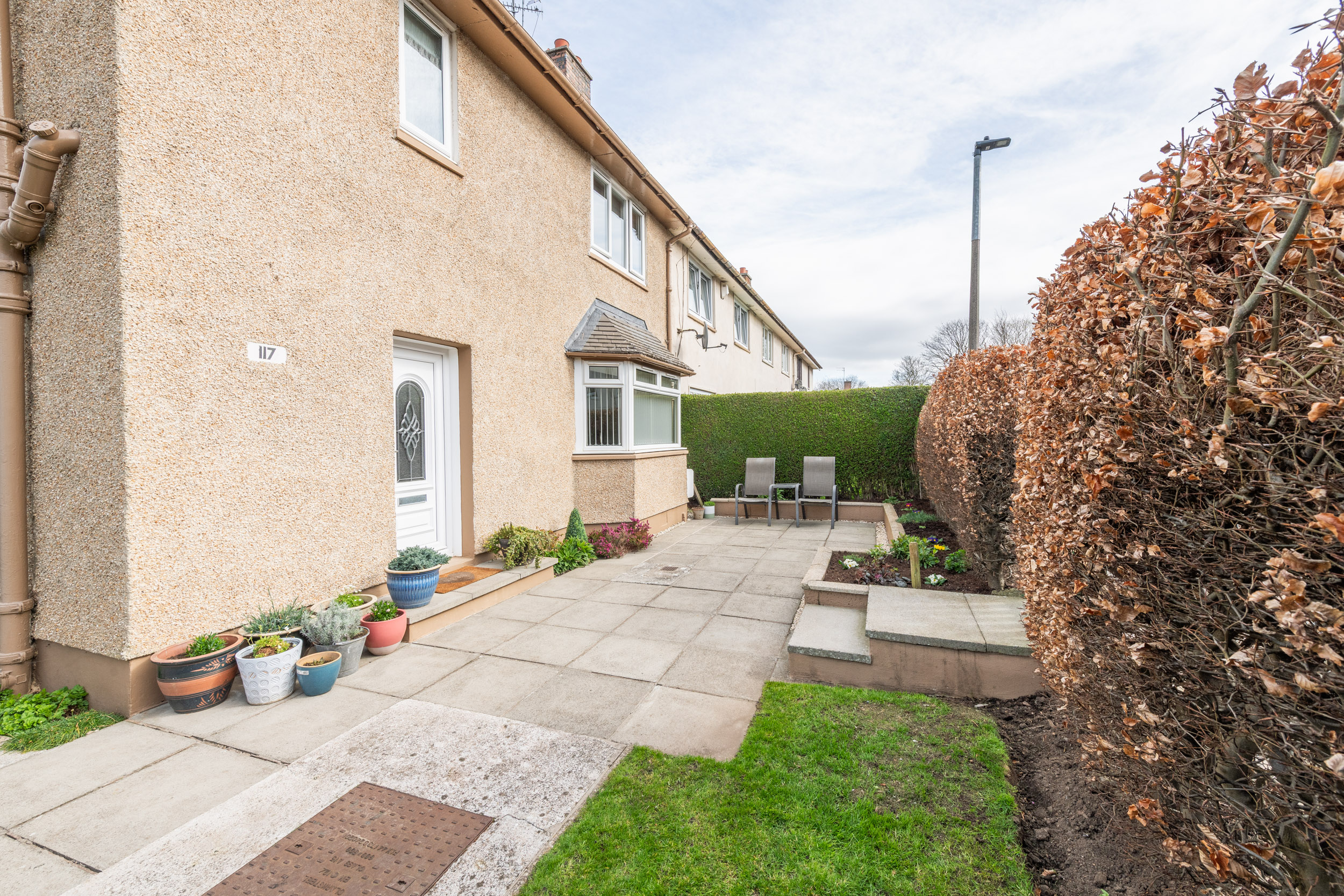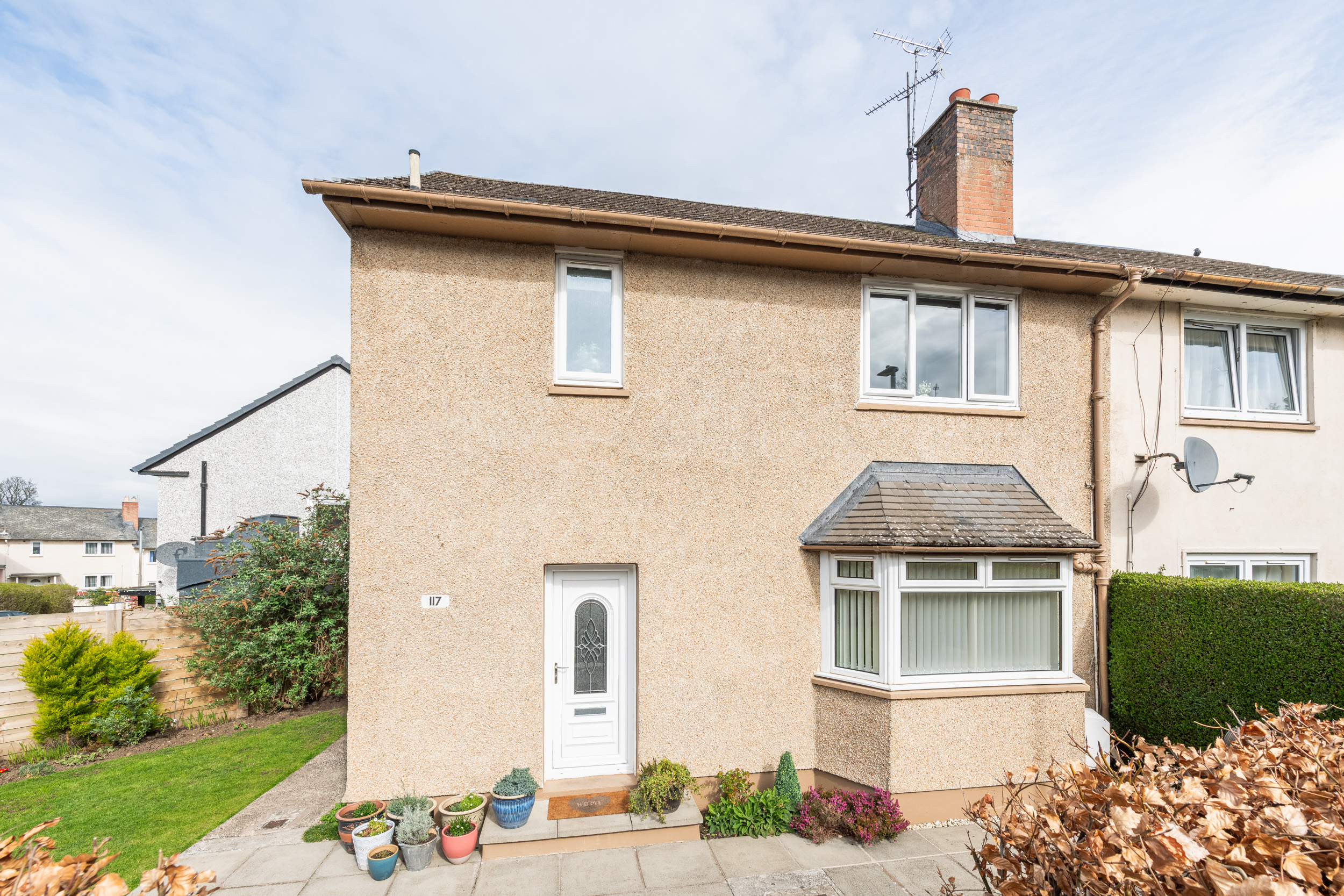 This well-presented three-bedroom end-terraced home, located at 117 Dinmont Drive in the heart of The Inch, offers bright and spacious accommodation ideal for modern family living.
