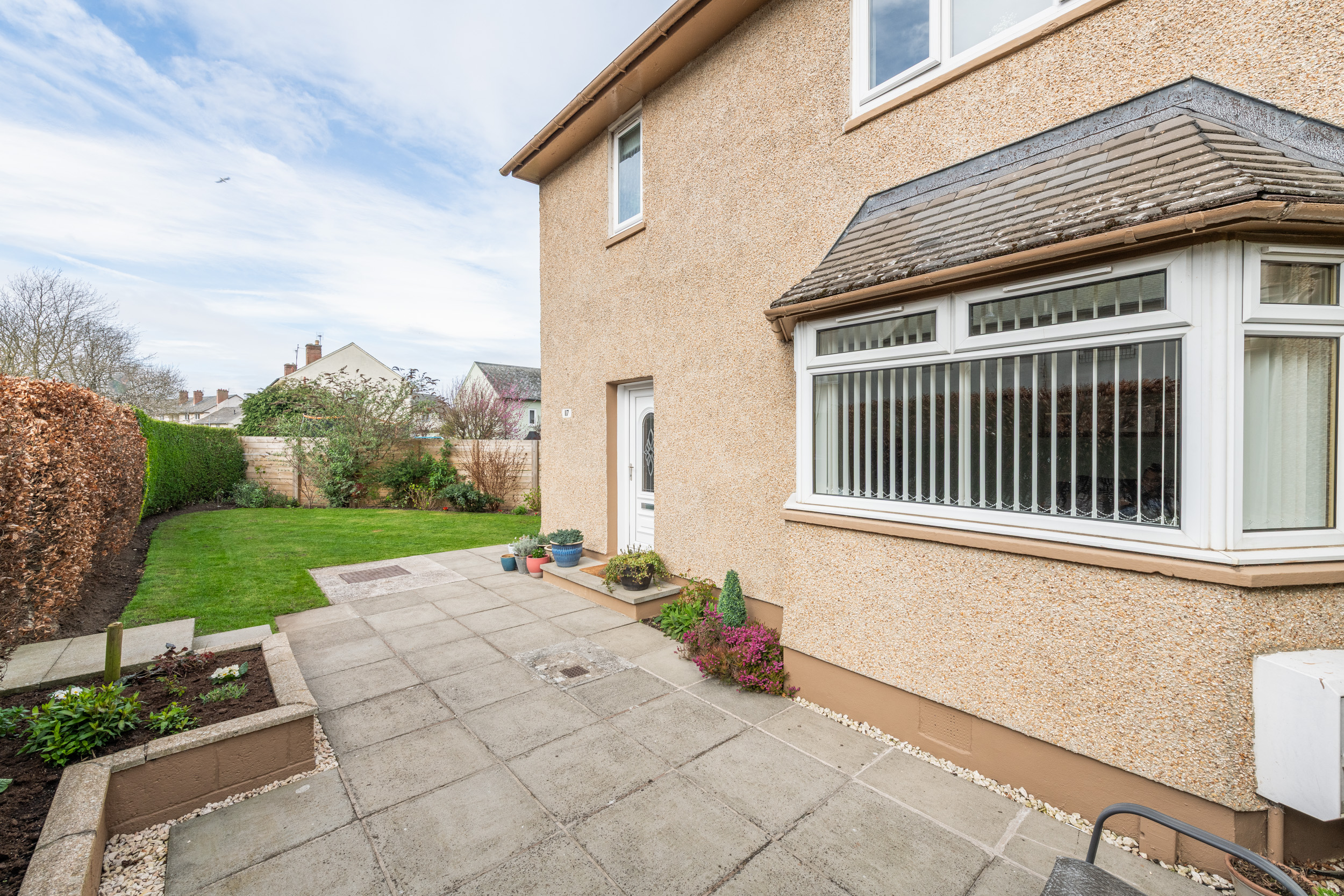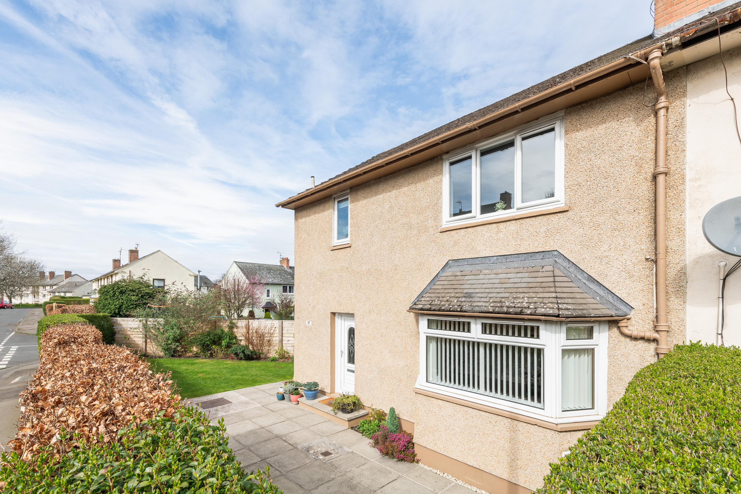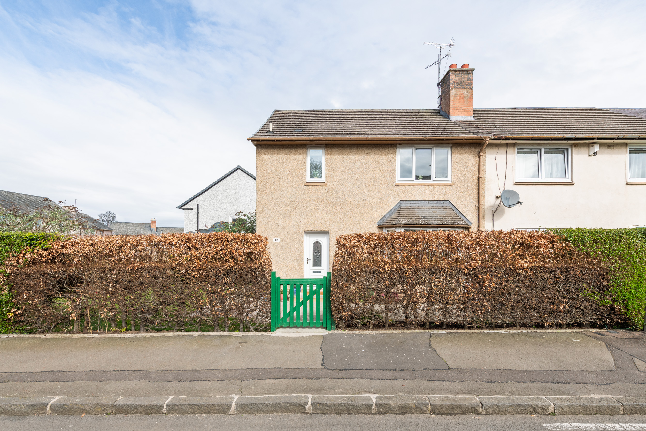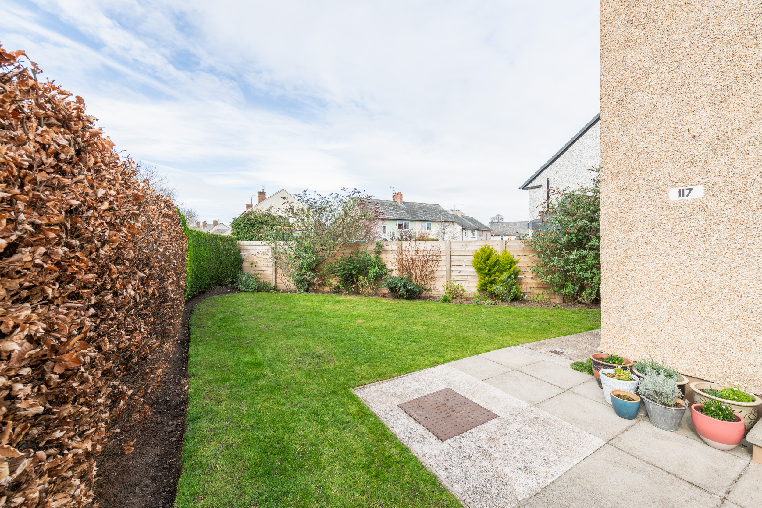 This well-presented three-bedroom end-terraced home, located at 117 Dinmont Drive in the heart of The Inch, offers bright and spacious accommodation ideal for modern family living.