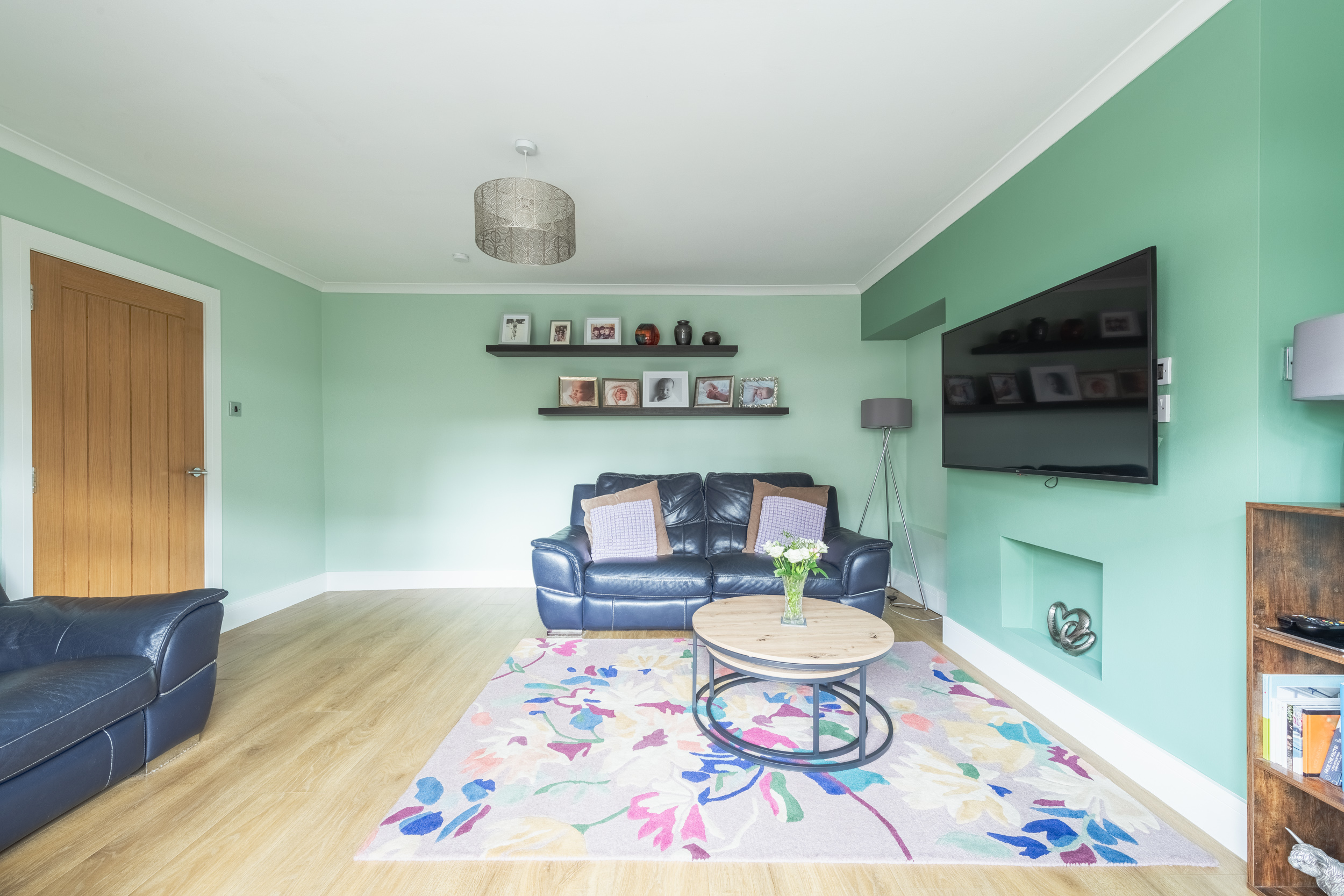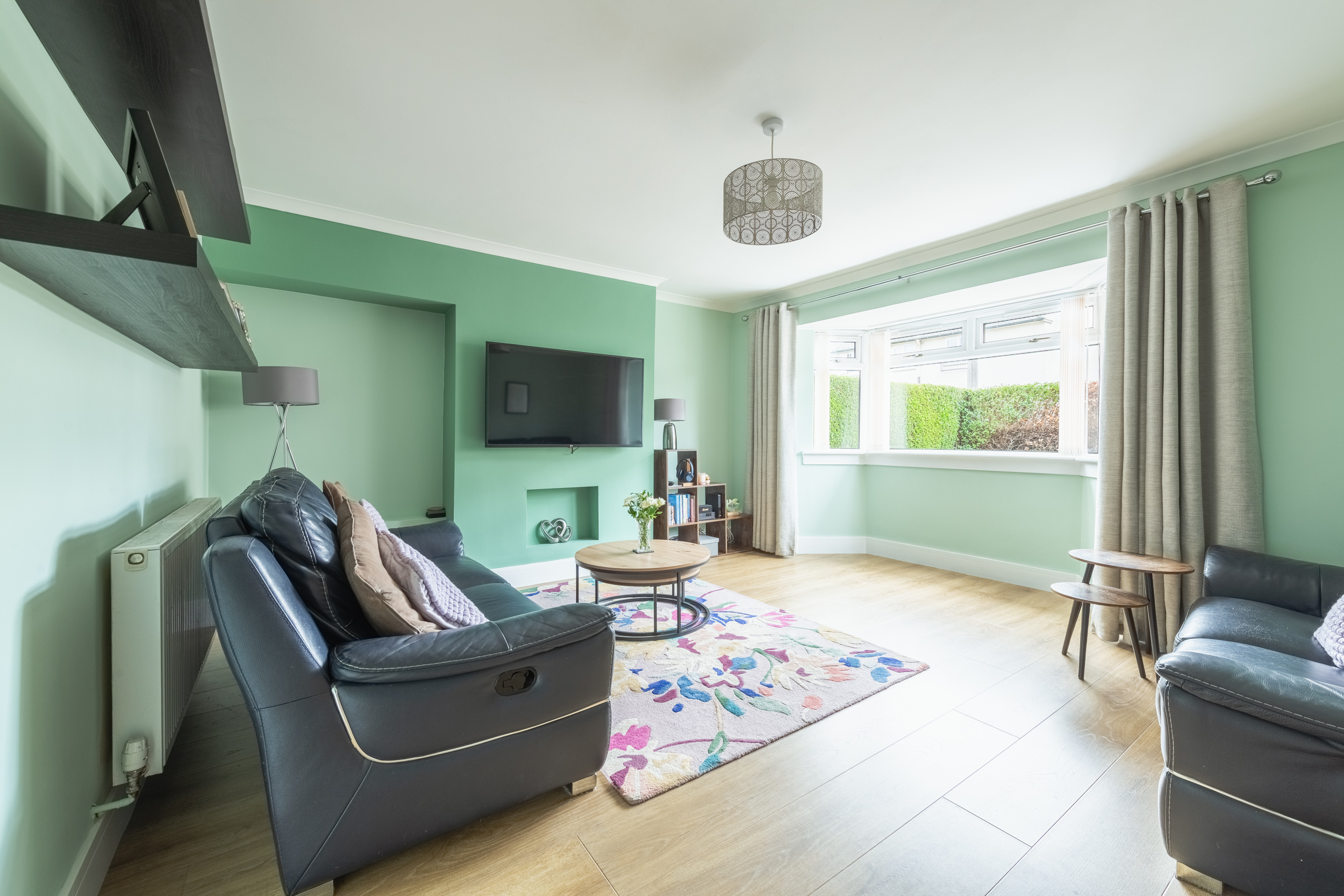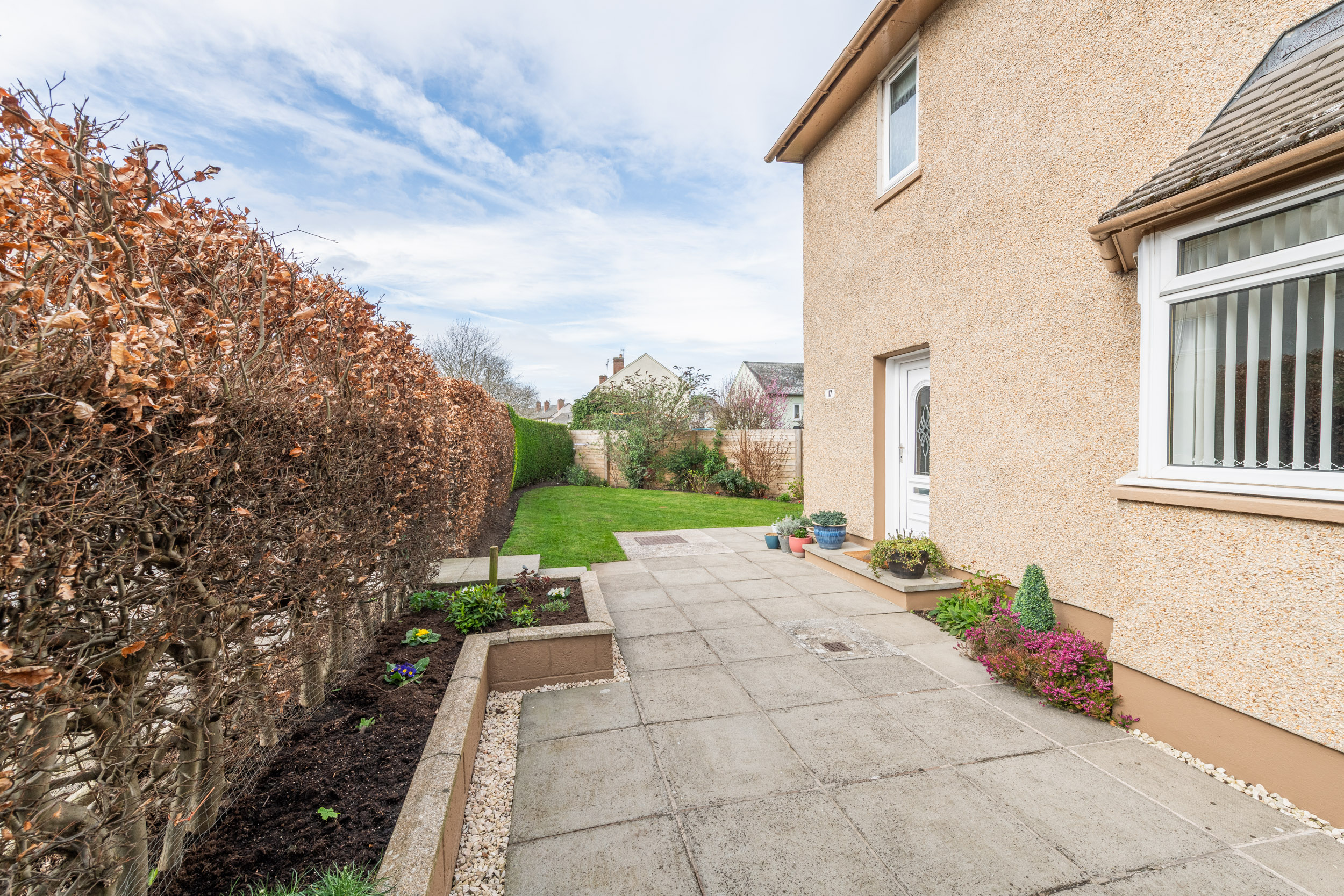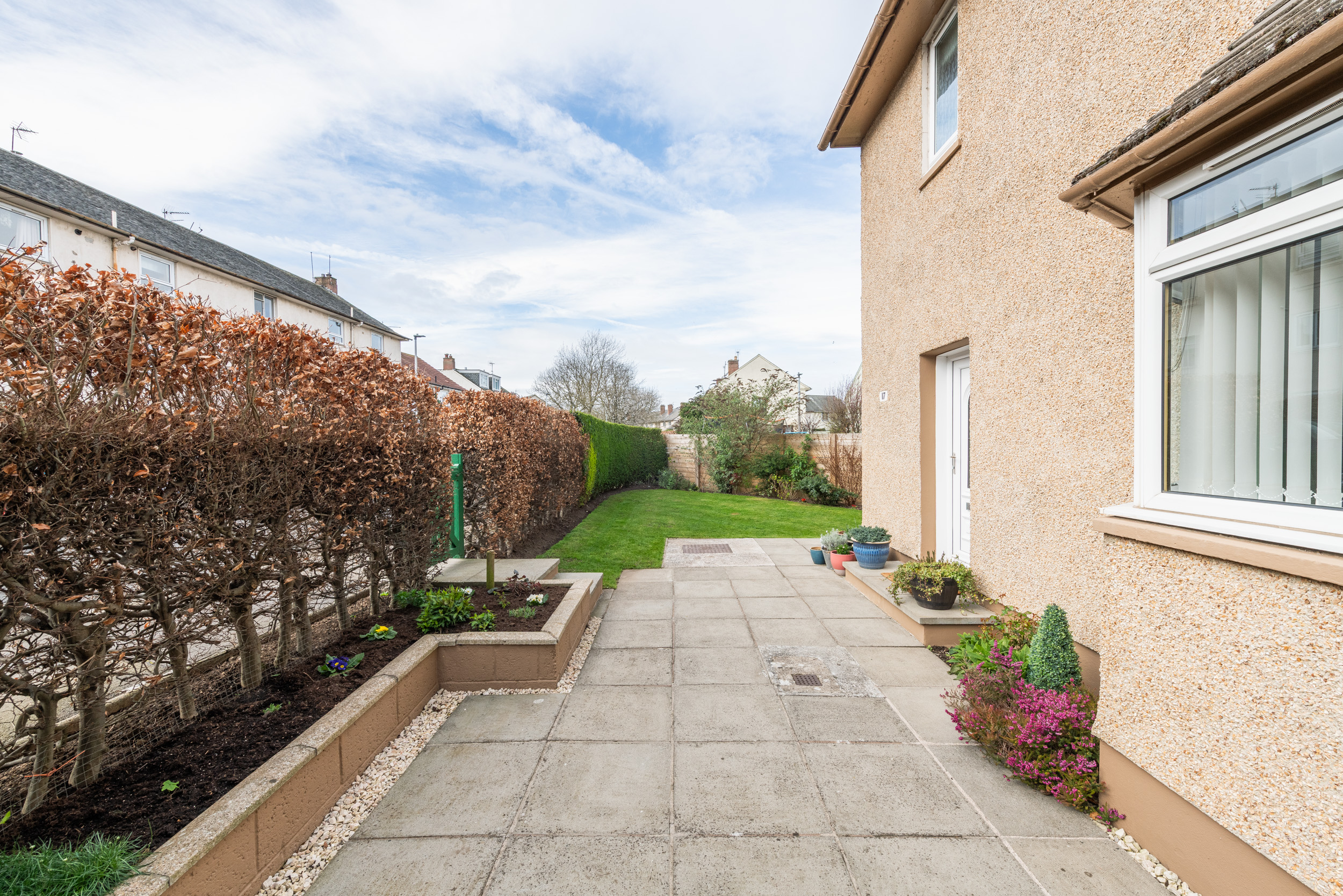 This well-presented three-bedroom end-terraced home, located at 117 Dinmont Drive in the heart of The Inch, offers bright and spacious accommodation ideal for modern family living.