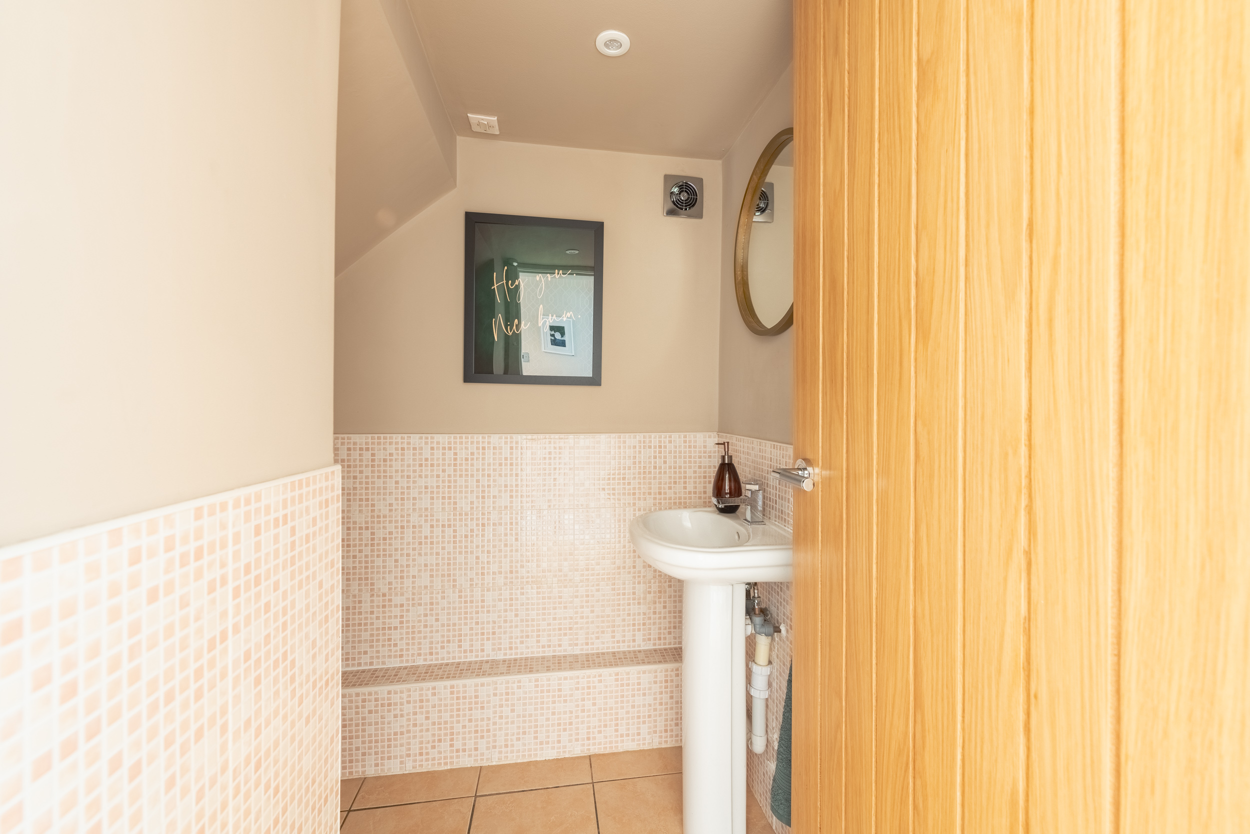 The ground floor features a generous and inviting living room, filled with natural light, alongside a stylish open-plan kitchen and dining area finished to a high standard—perfect for both everyday living and entertaining. A convenient downstairs WC completes the lower level.