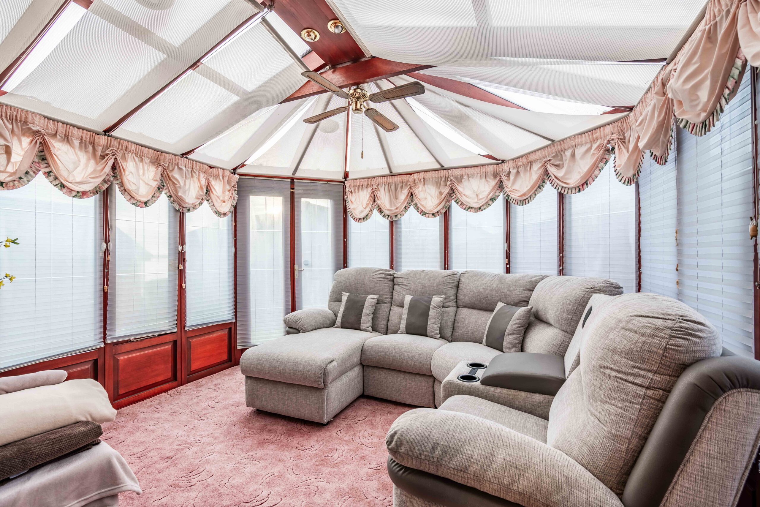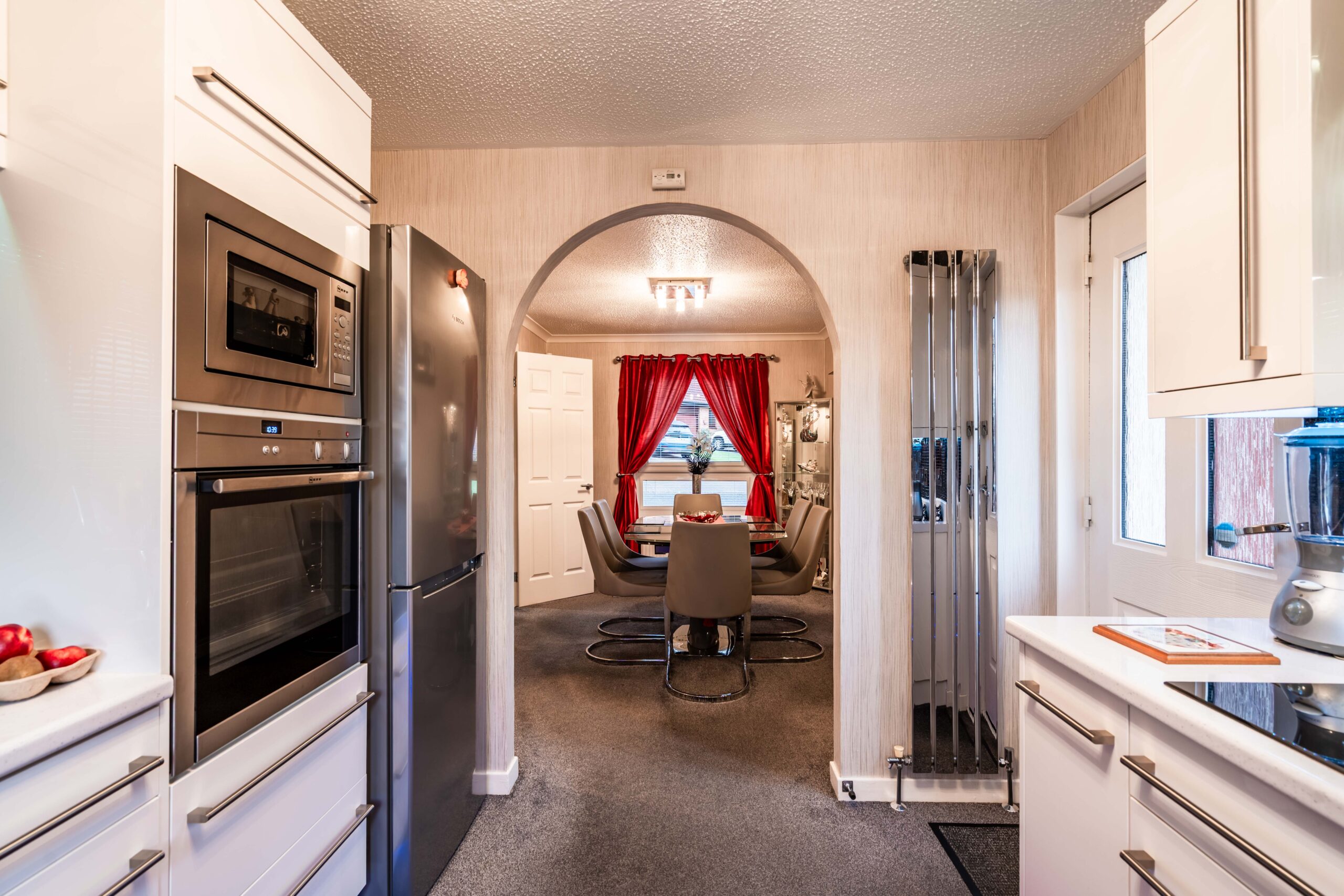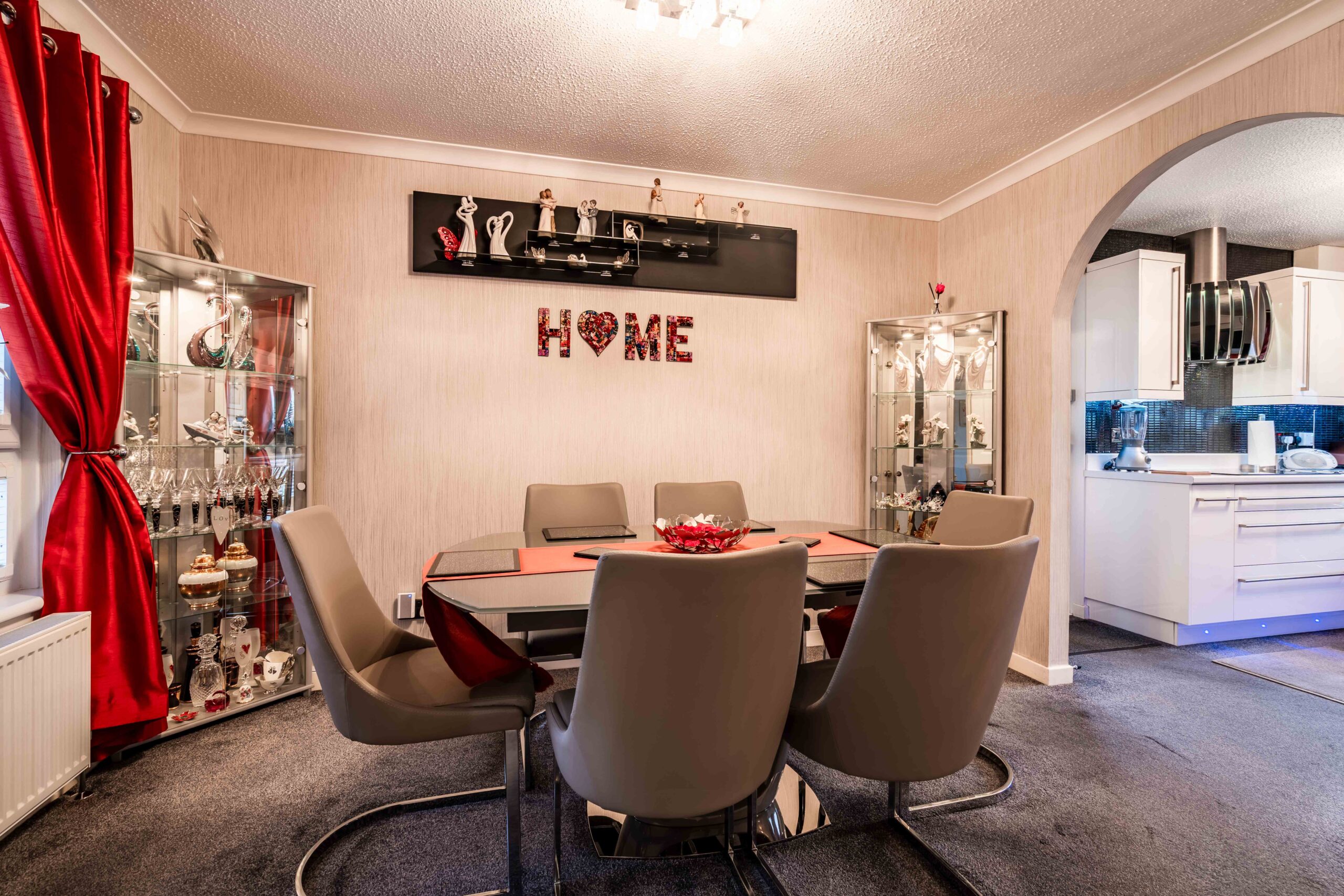 Inside, the separate living room is comfortable and inviting, perfect for relaxing evenings, and flows naturally into a bright conservatory that extends the living space and provides a peaceful spot to enjoy the garden year-round. A well-proportioned dining room offers an ideal setting for family meals or entertaining, while the thoughtfully laid-out kitchen features ample storage and workspace, creating a practical yet homely heart of the house.