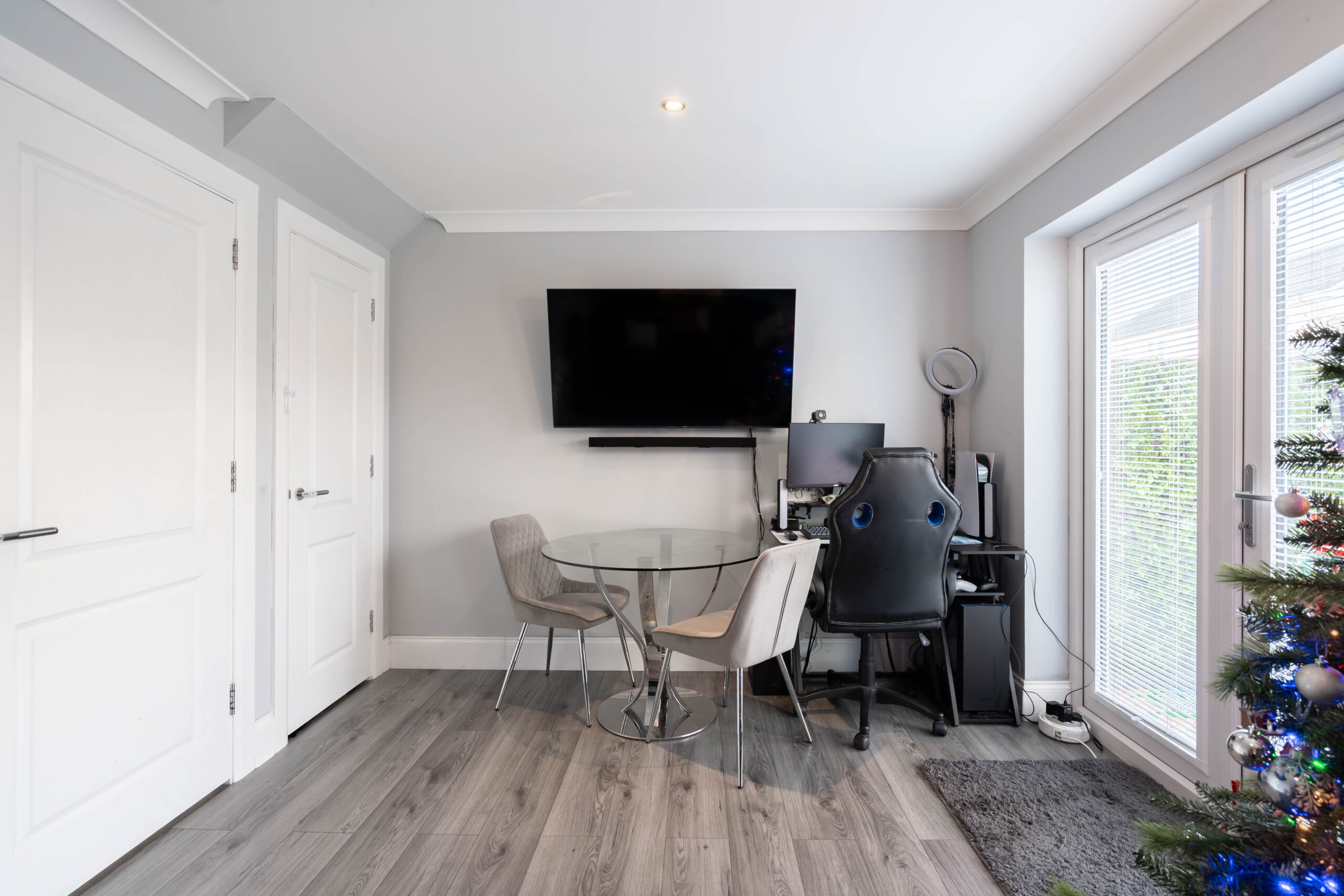 The home features a bright and spacious open-plan living and dining area, perfectly suited to modern lifestyles. Large windows allow an abundance of natural light to fill the space, creating a warm and welcoming atmosphere throughout.