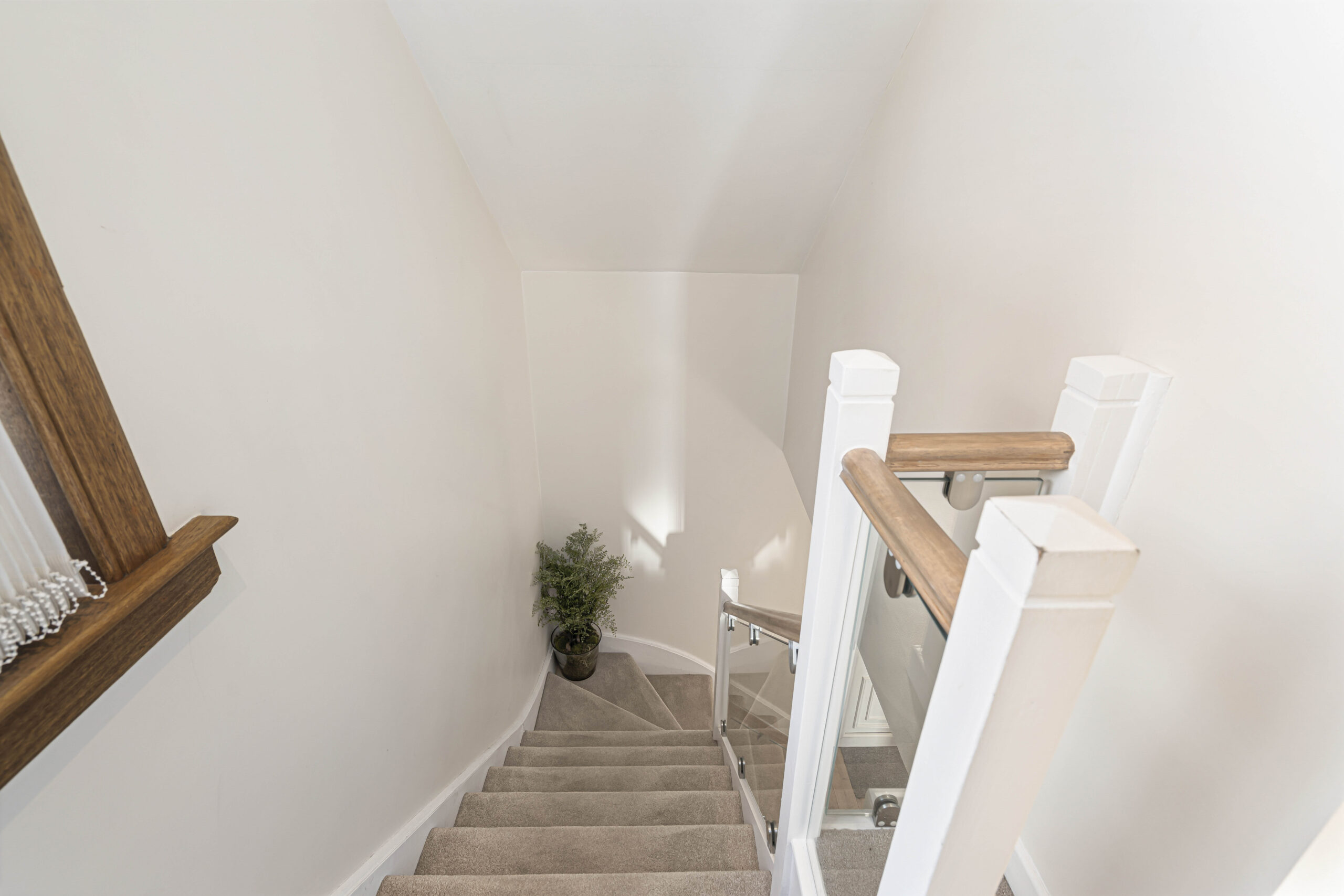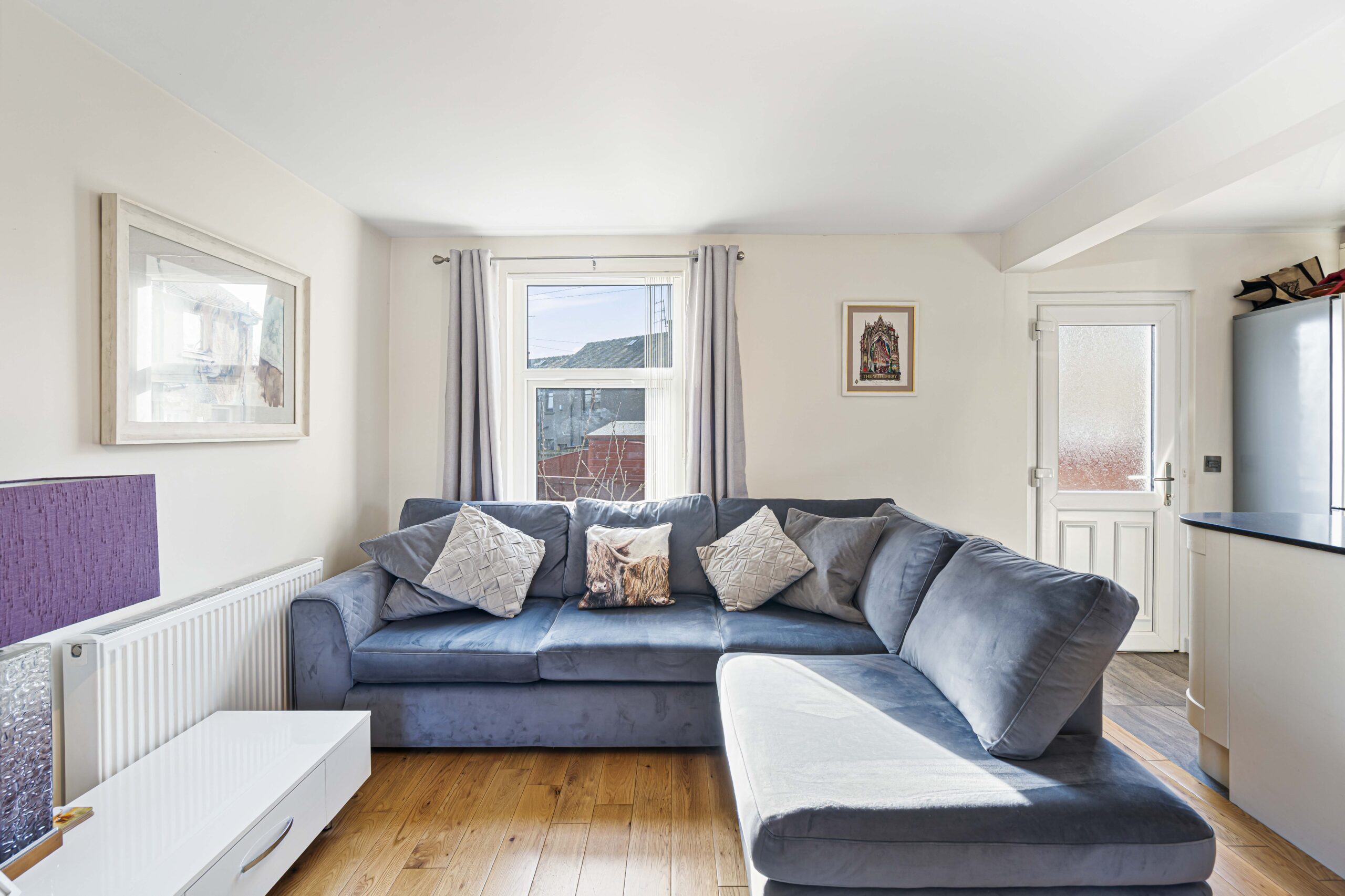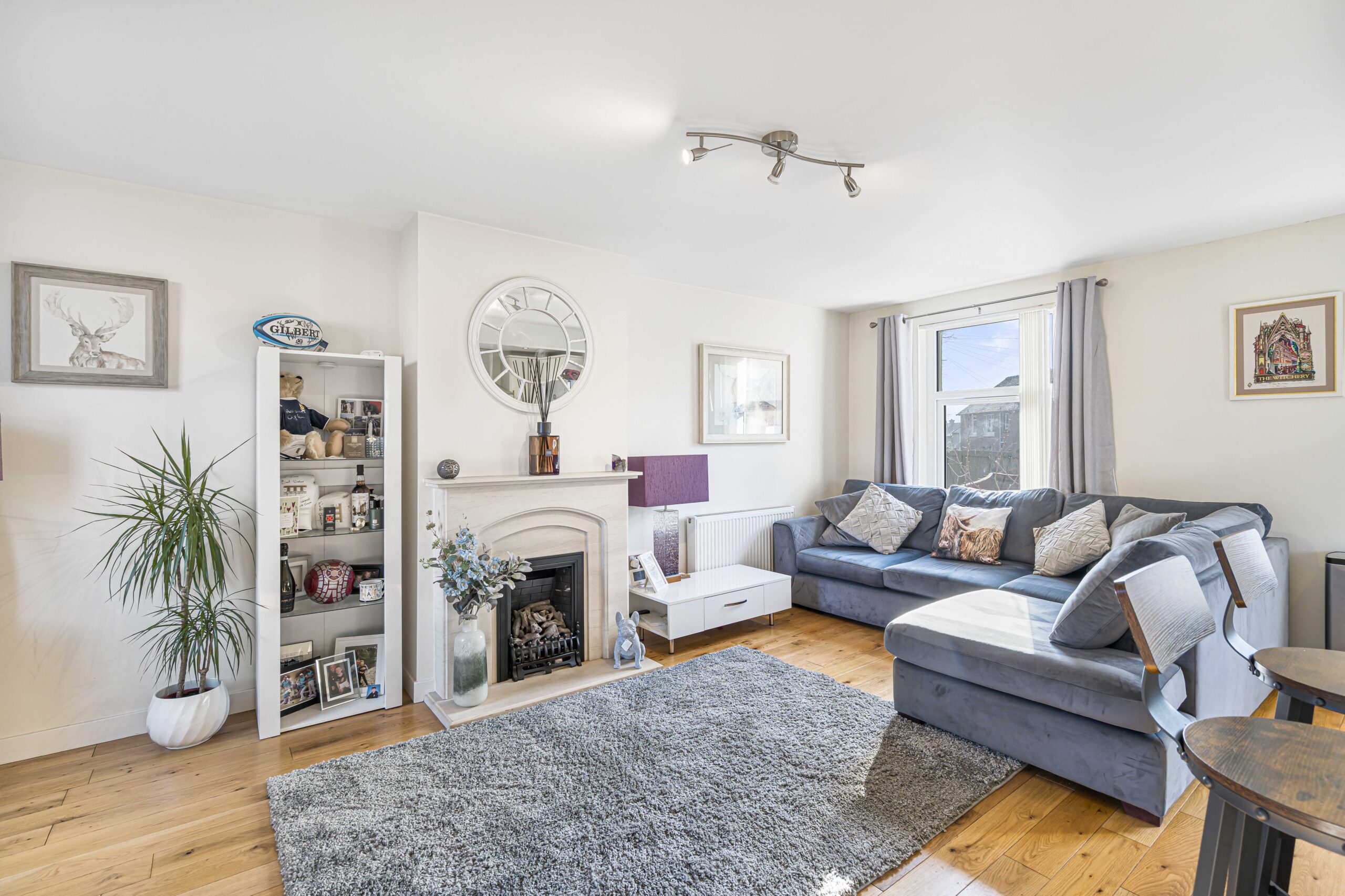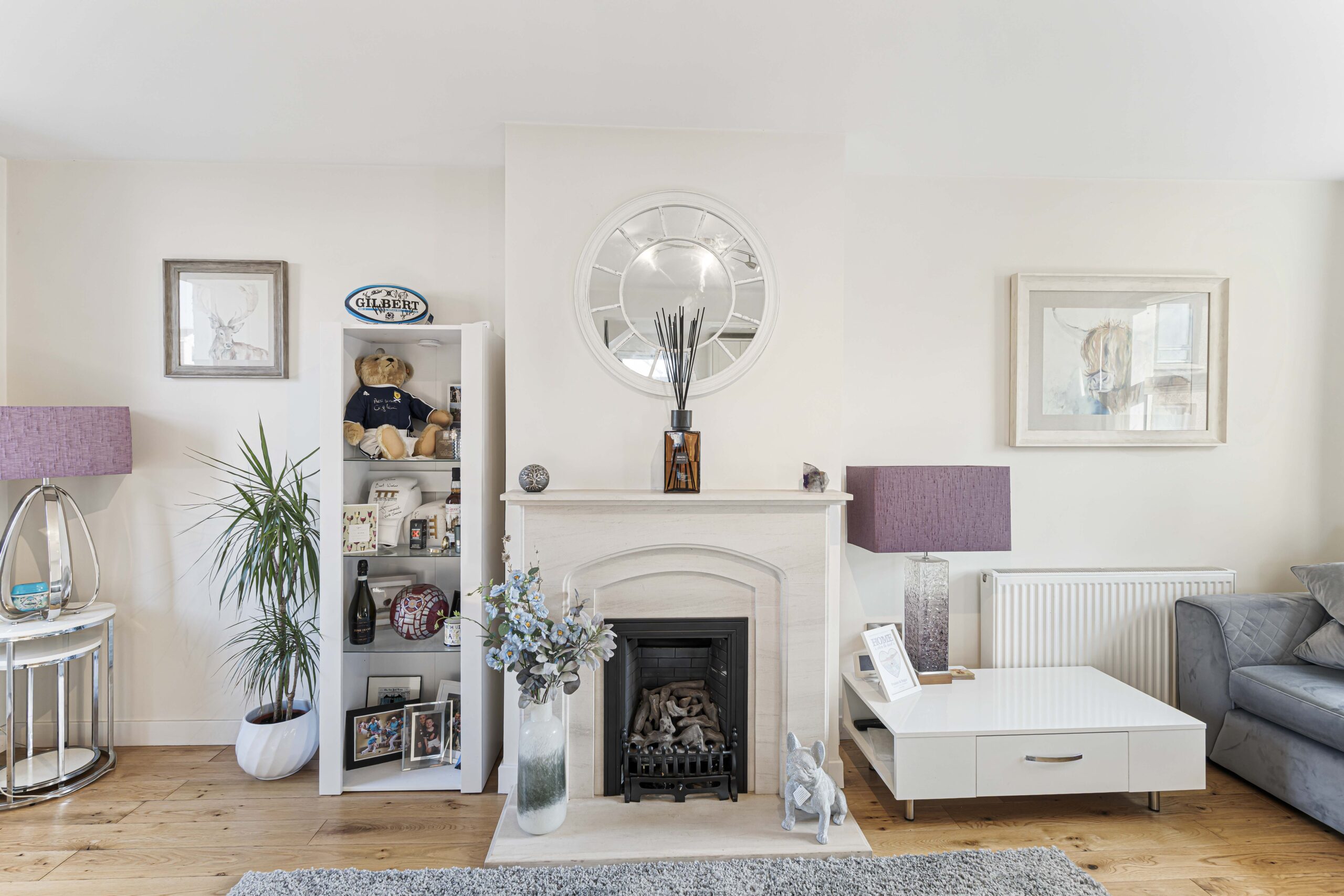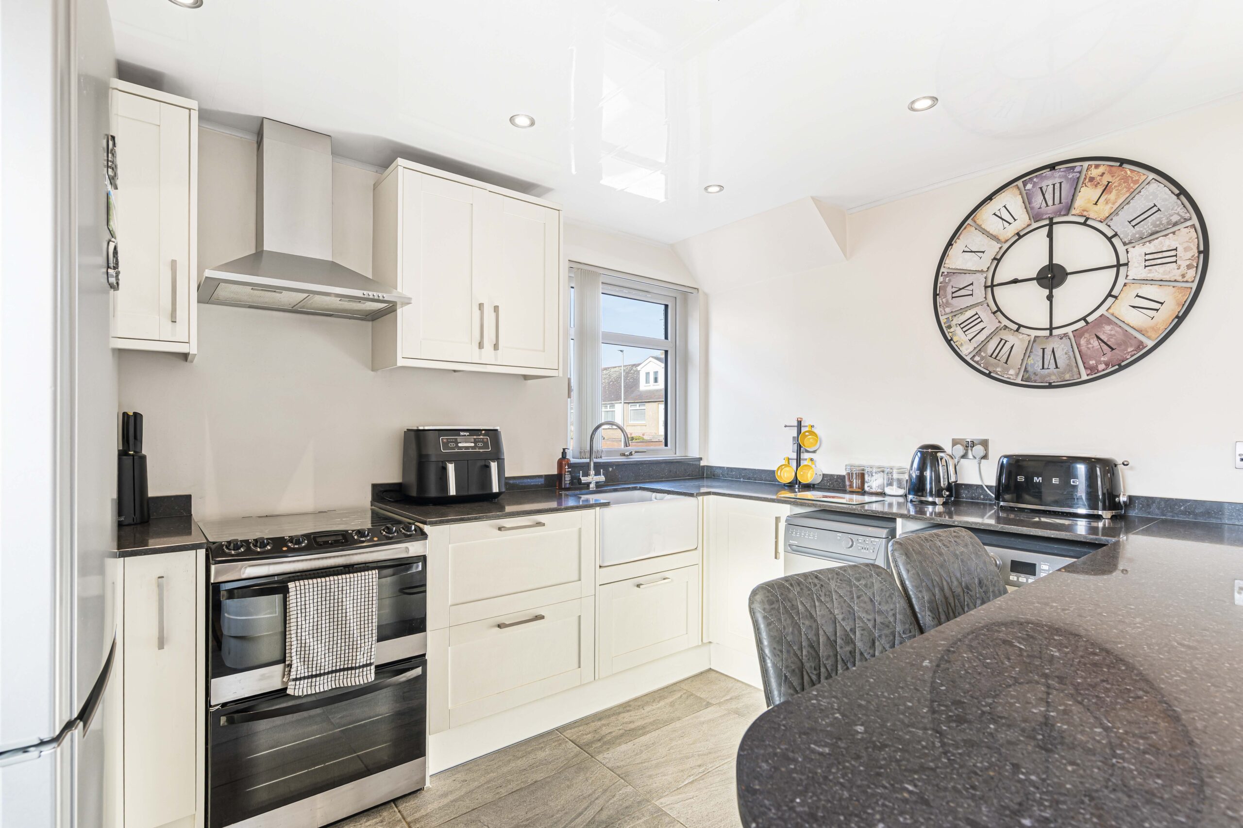 This beautifully presented end-terrace home offers bright, well-proportioned accommodation with an attractive outlook. The ground floor comprises a welcoming entrance hallway with useful storage, and an impressive open-plan living and kitchen area featuring dual-aspect windows that flood the space with natural light. The contemporary kitchen is fitted with stylish base and wall units, complemented by a breakfast bar, and provides direct access to the south-facing rear garden.