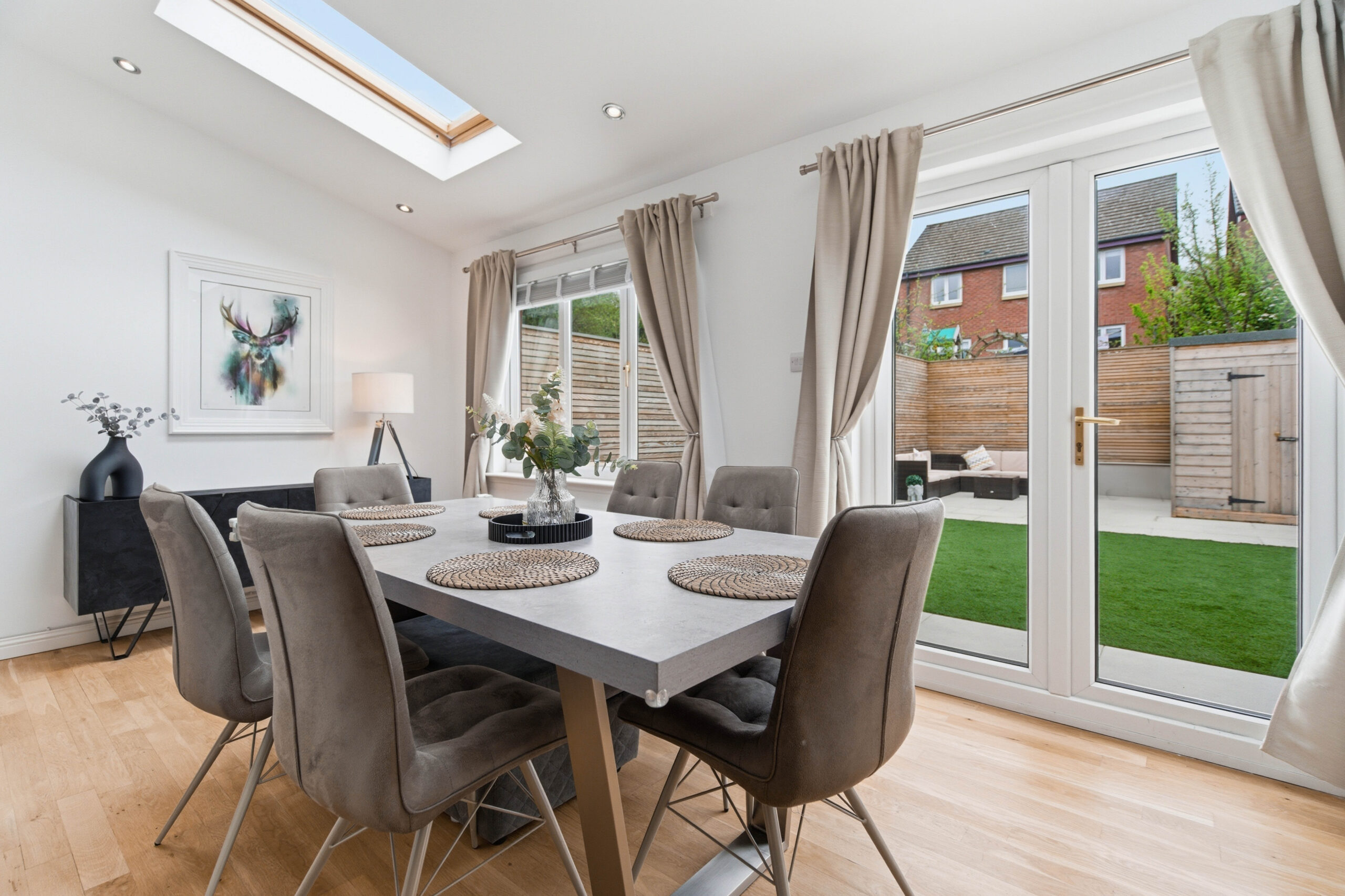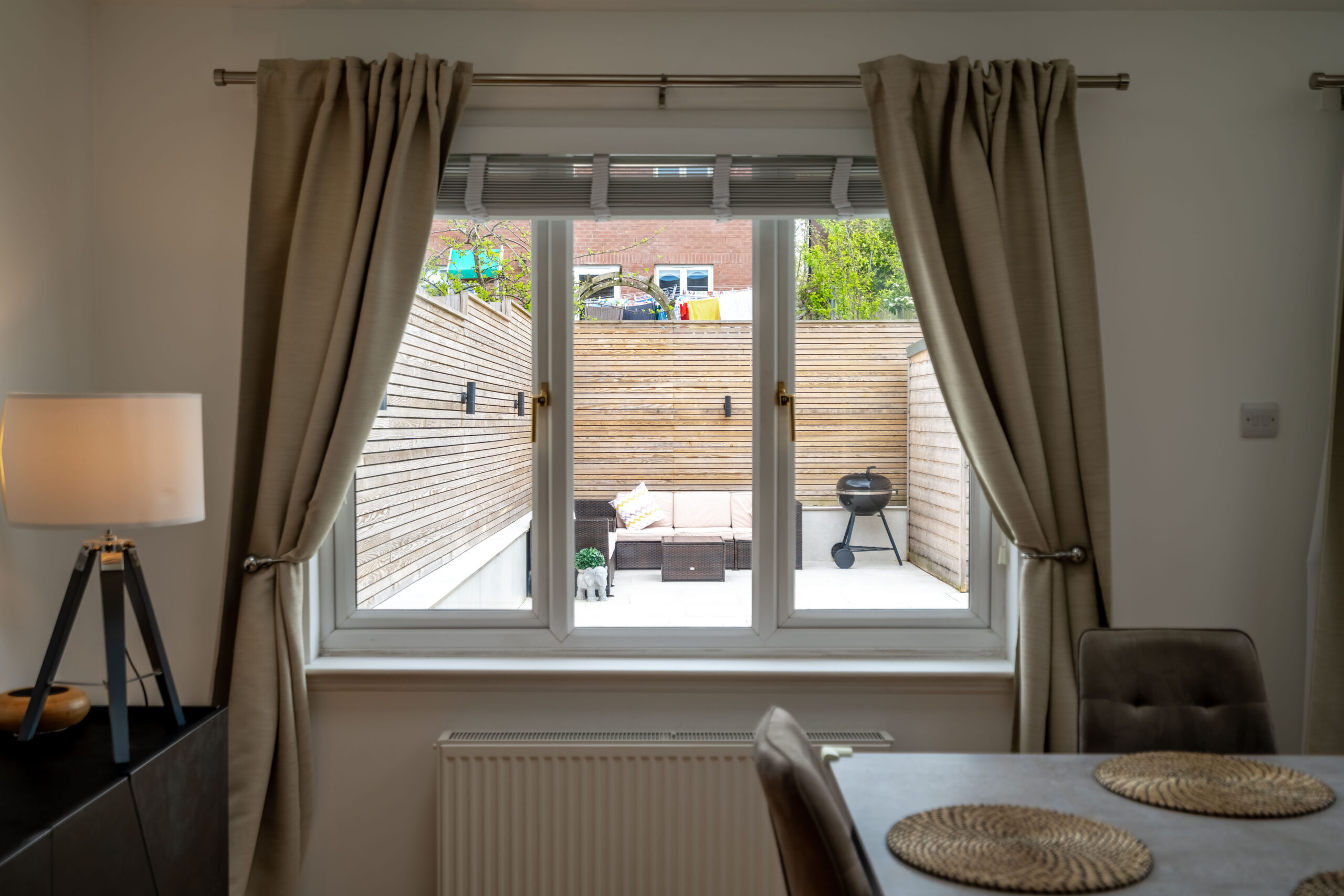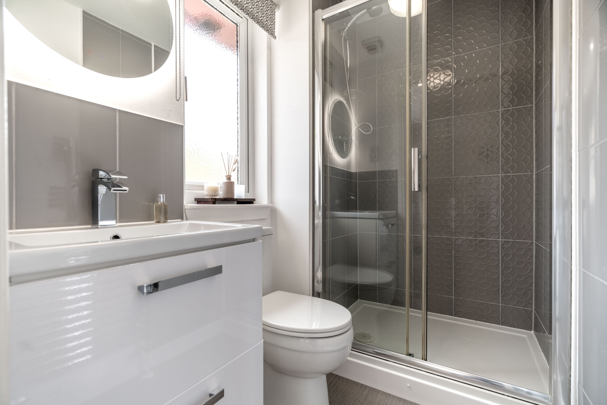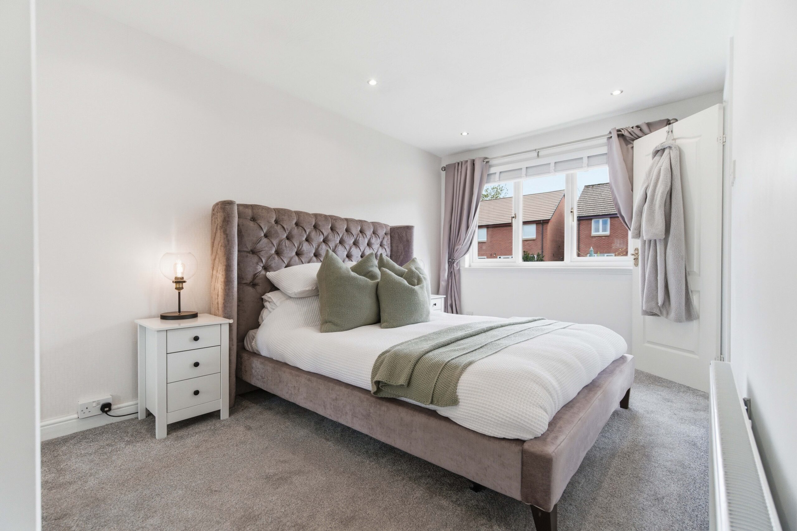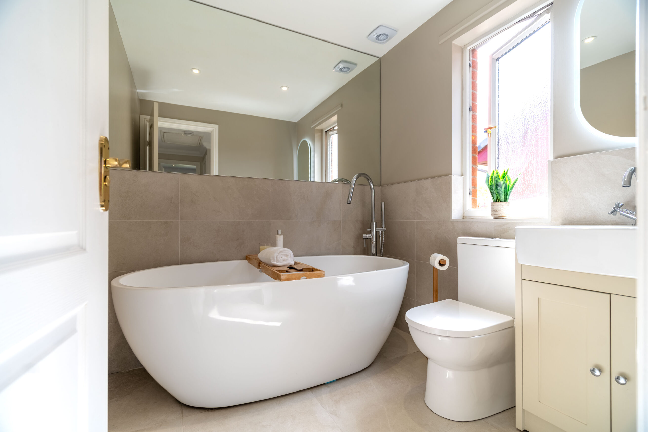 The kitchen is a well-maintained modern IKEA installation, offering practicality and ample storage. Upstairs, there are three well-proportioned bedrooms, including a principal bedroom with a modern en-suite shower room. Bedroom two benefits from a bespoke fitted wardrobe, while the main family bathroom has been recently upgraded with a freestanding bath and floor-mounted tap, creating a luxurious feel.