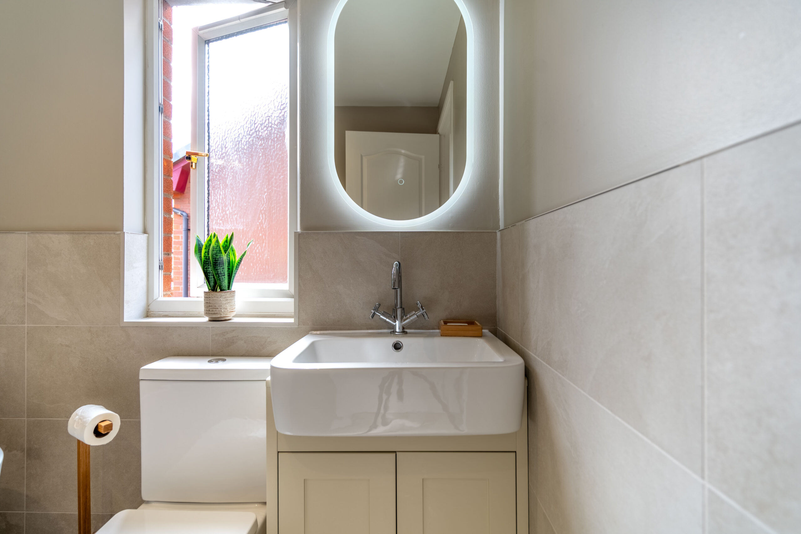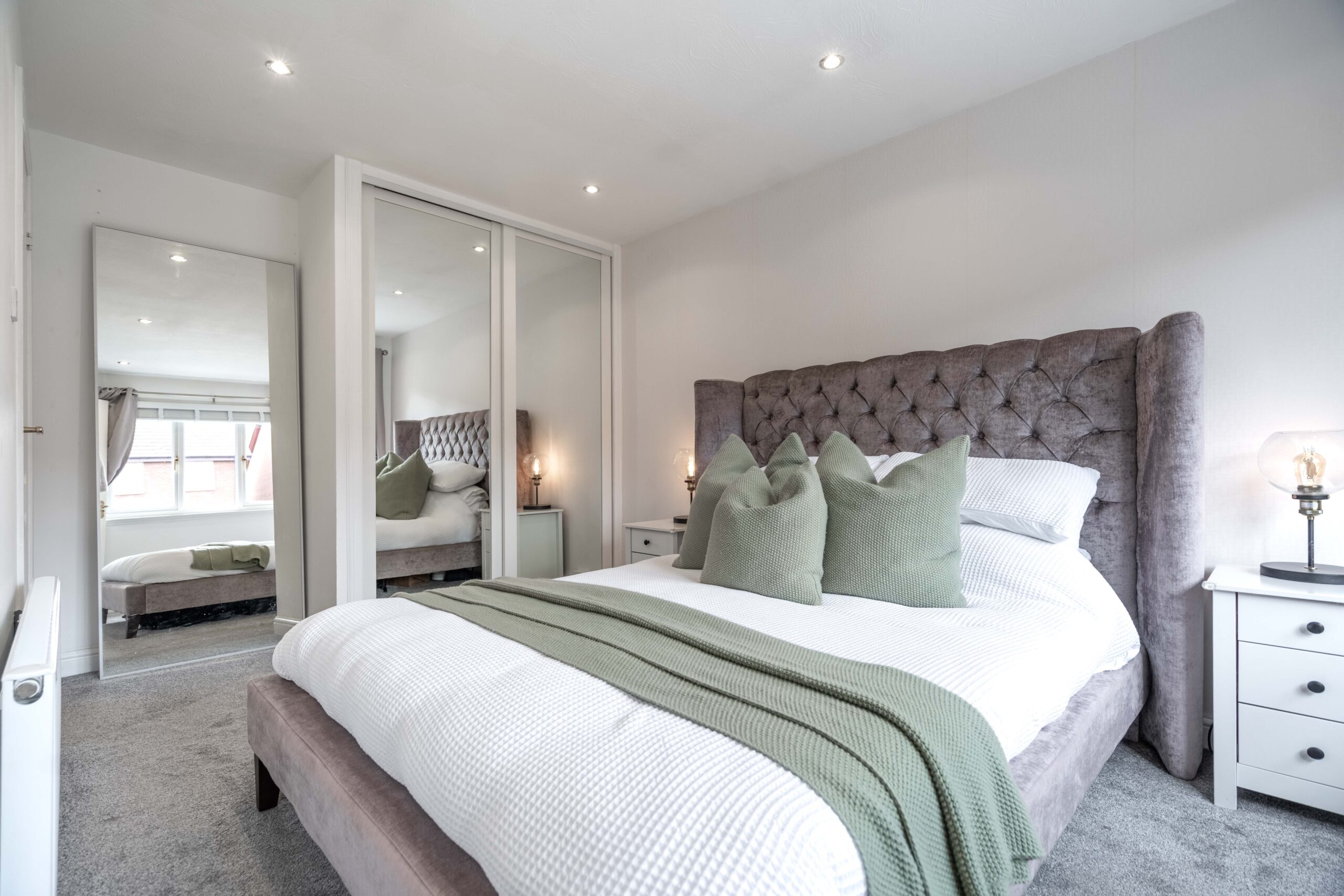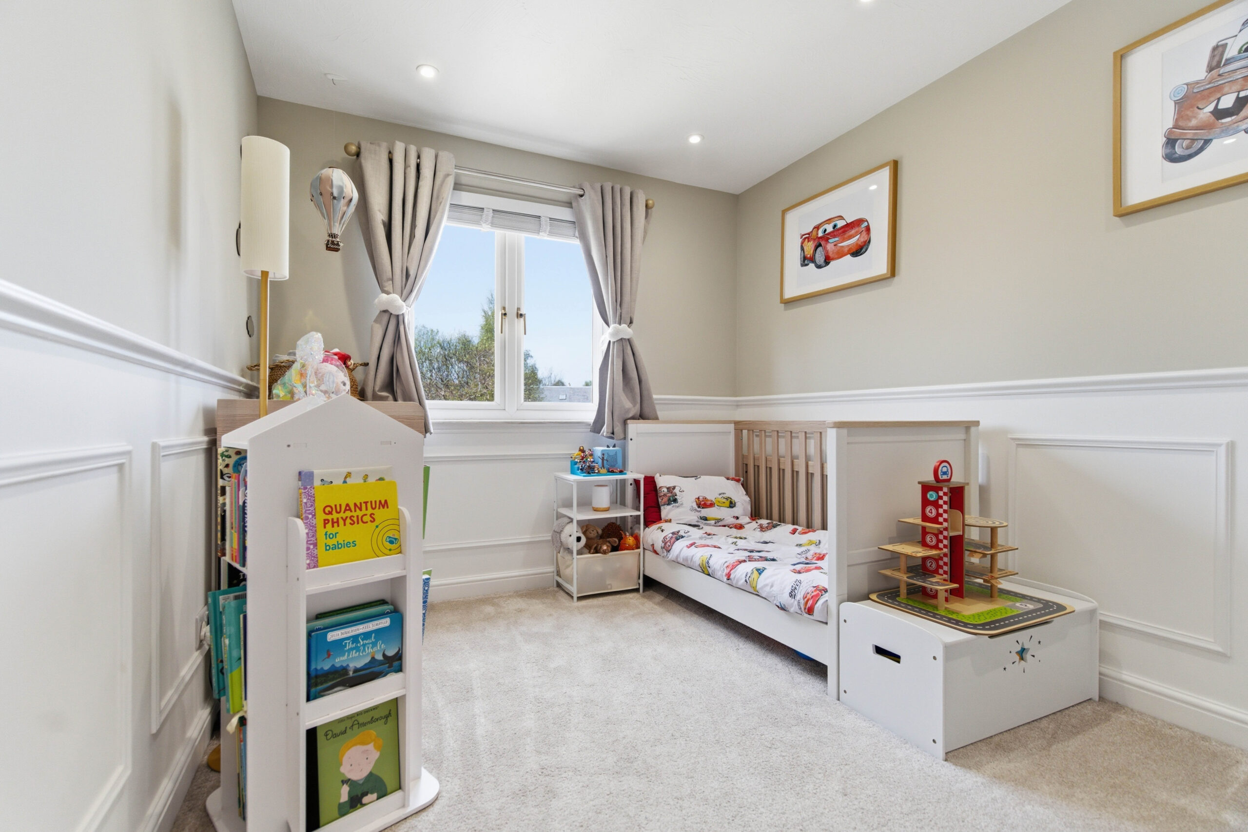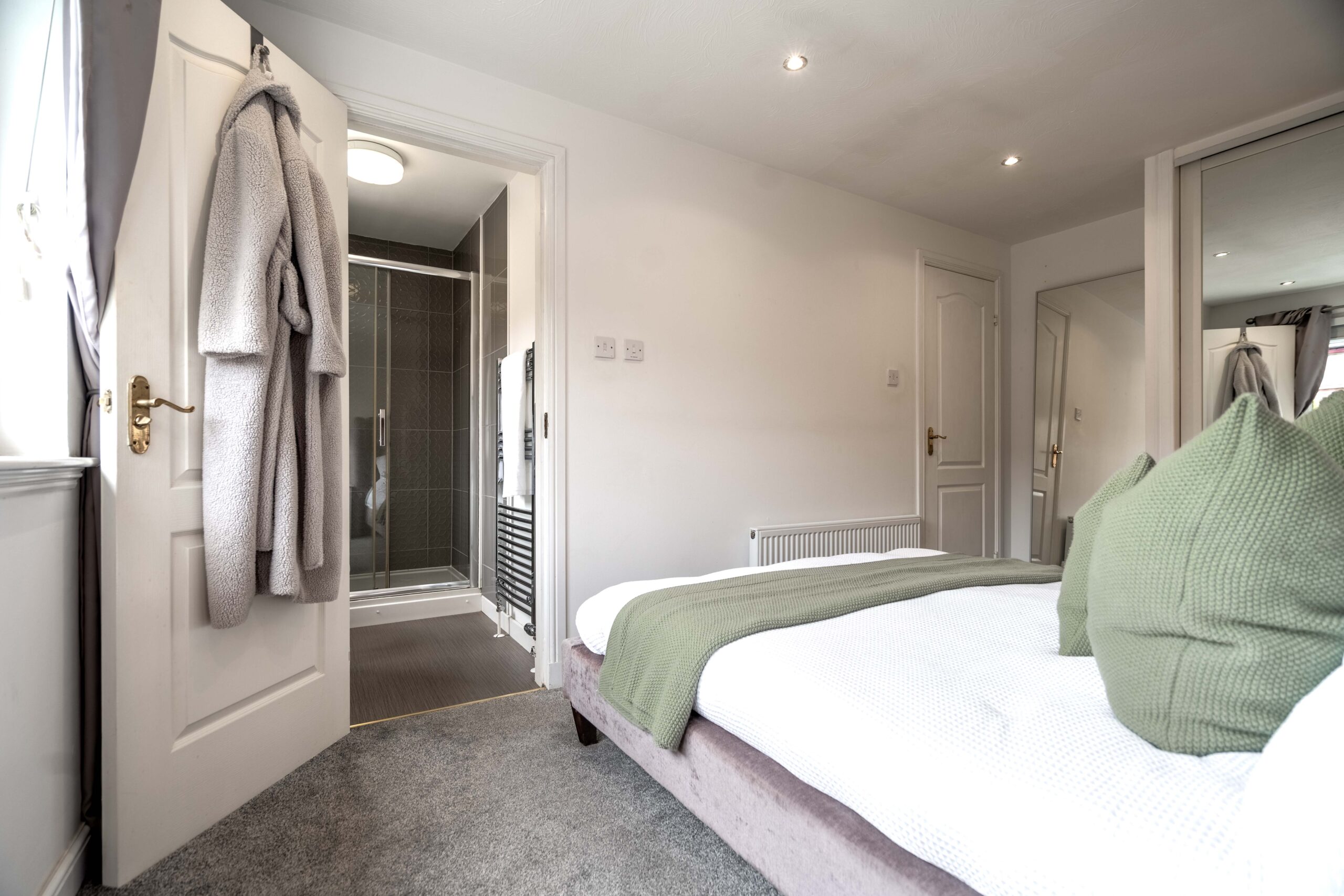 The kitchen is a well-maintained modern IKEA installation, offering practicality and ample storage. Upstairs, there are three well-proportioned bedrooms, including a principal bedroom with a modern en-suite shower room. Bedroom two benefits from a bespoke fitted wardrobe, while the main family bathroom has been recently upgraded with a freestanding bath and floor-mounted tap, creating a luxurious feel.