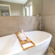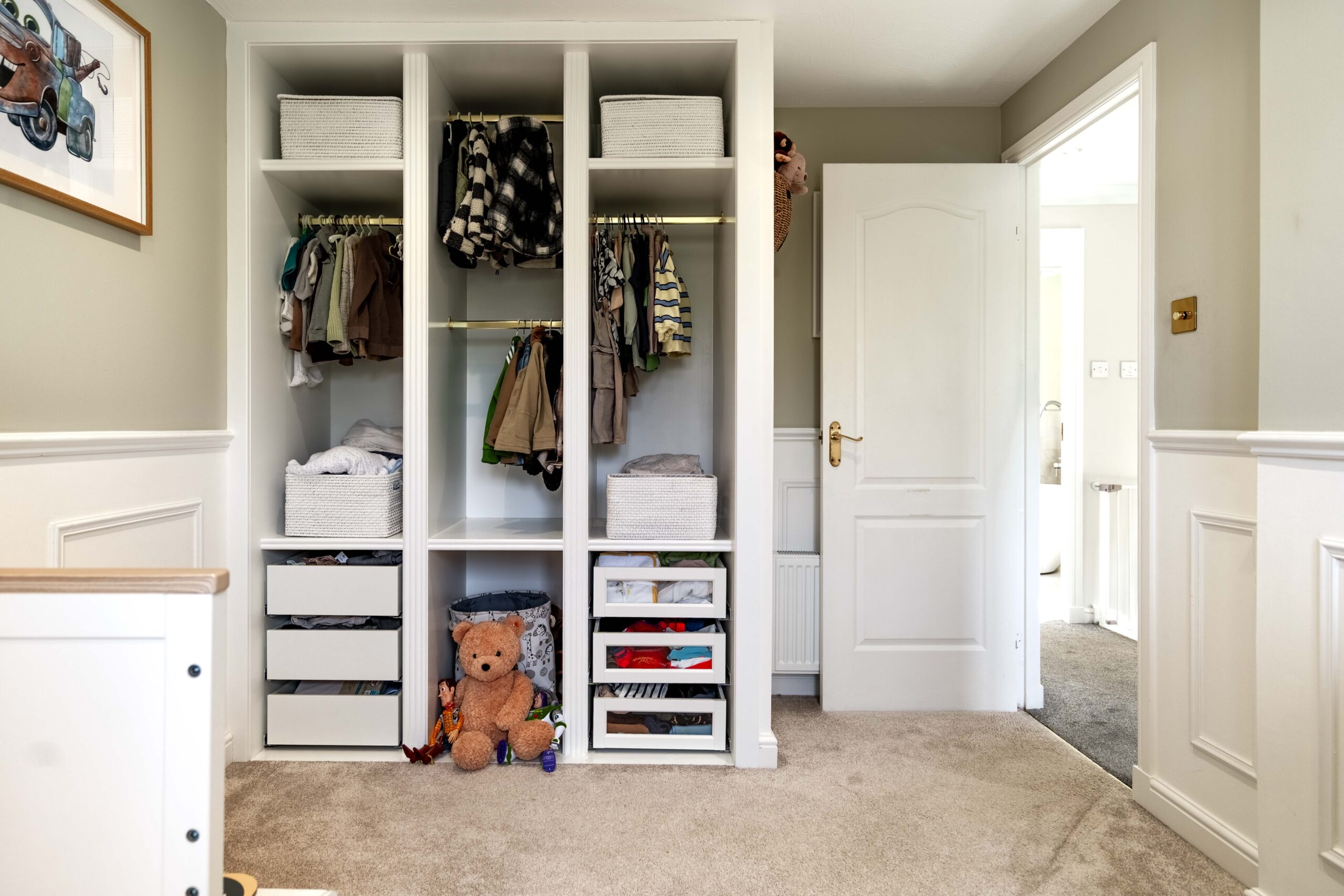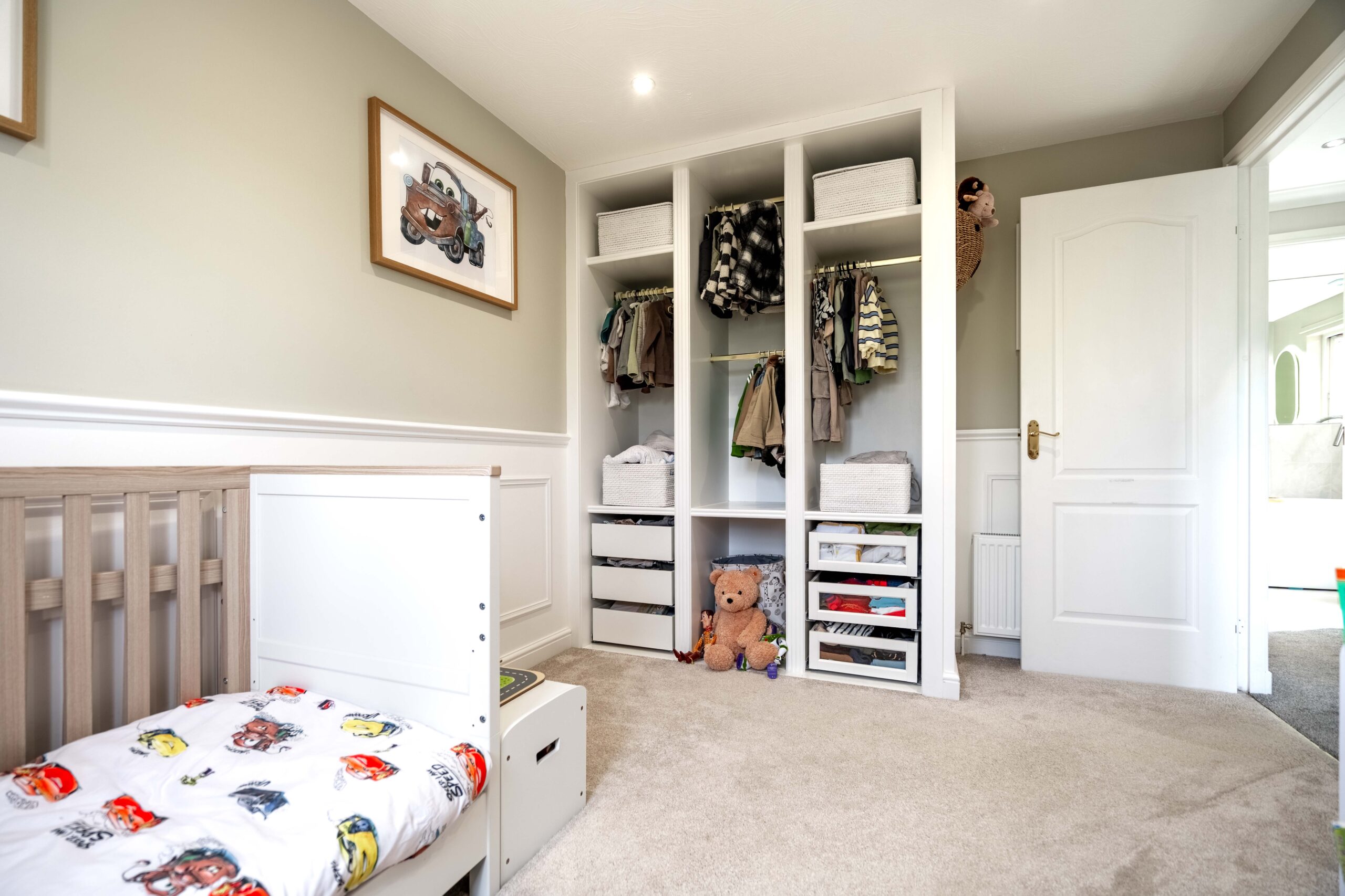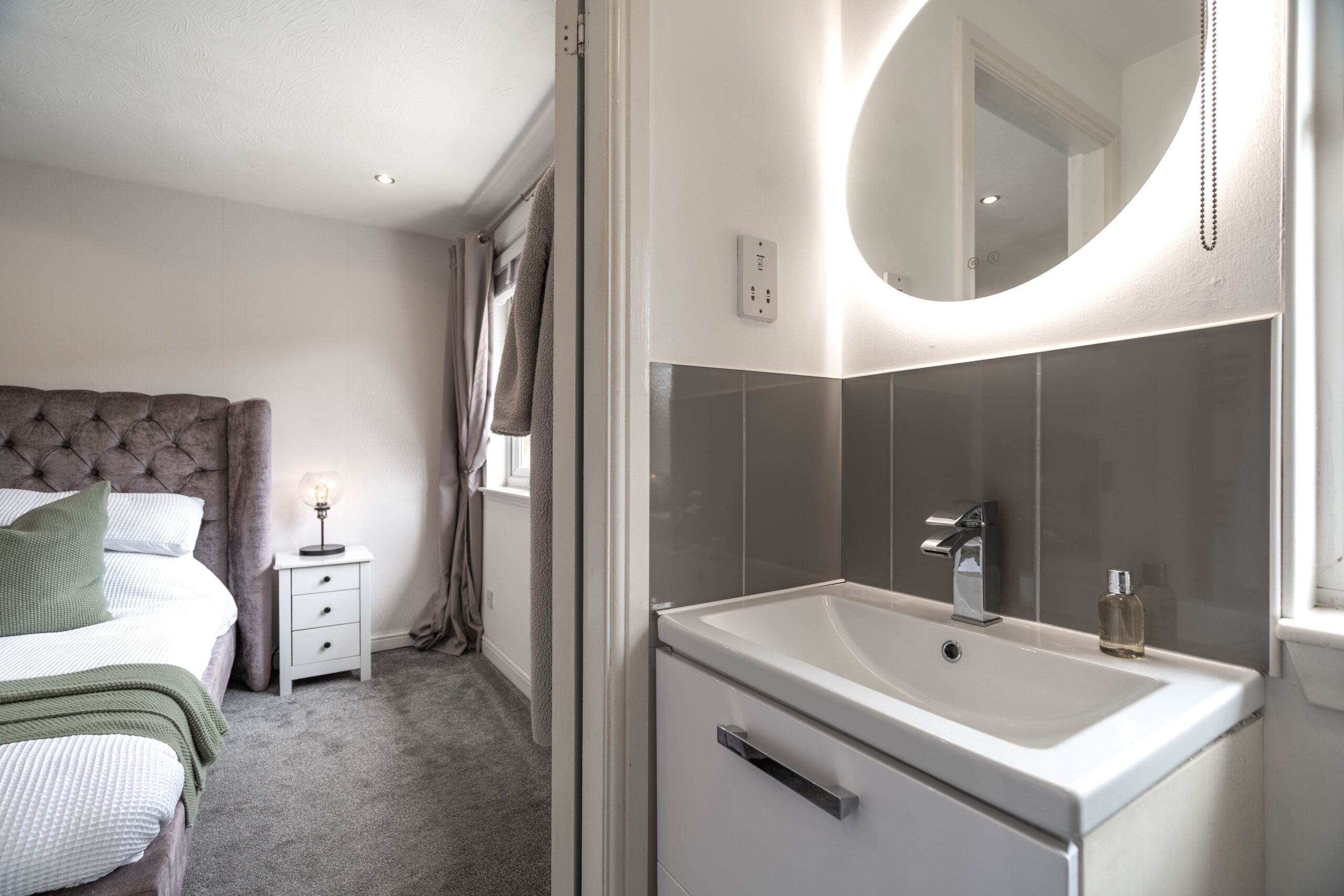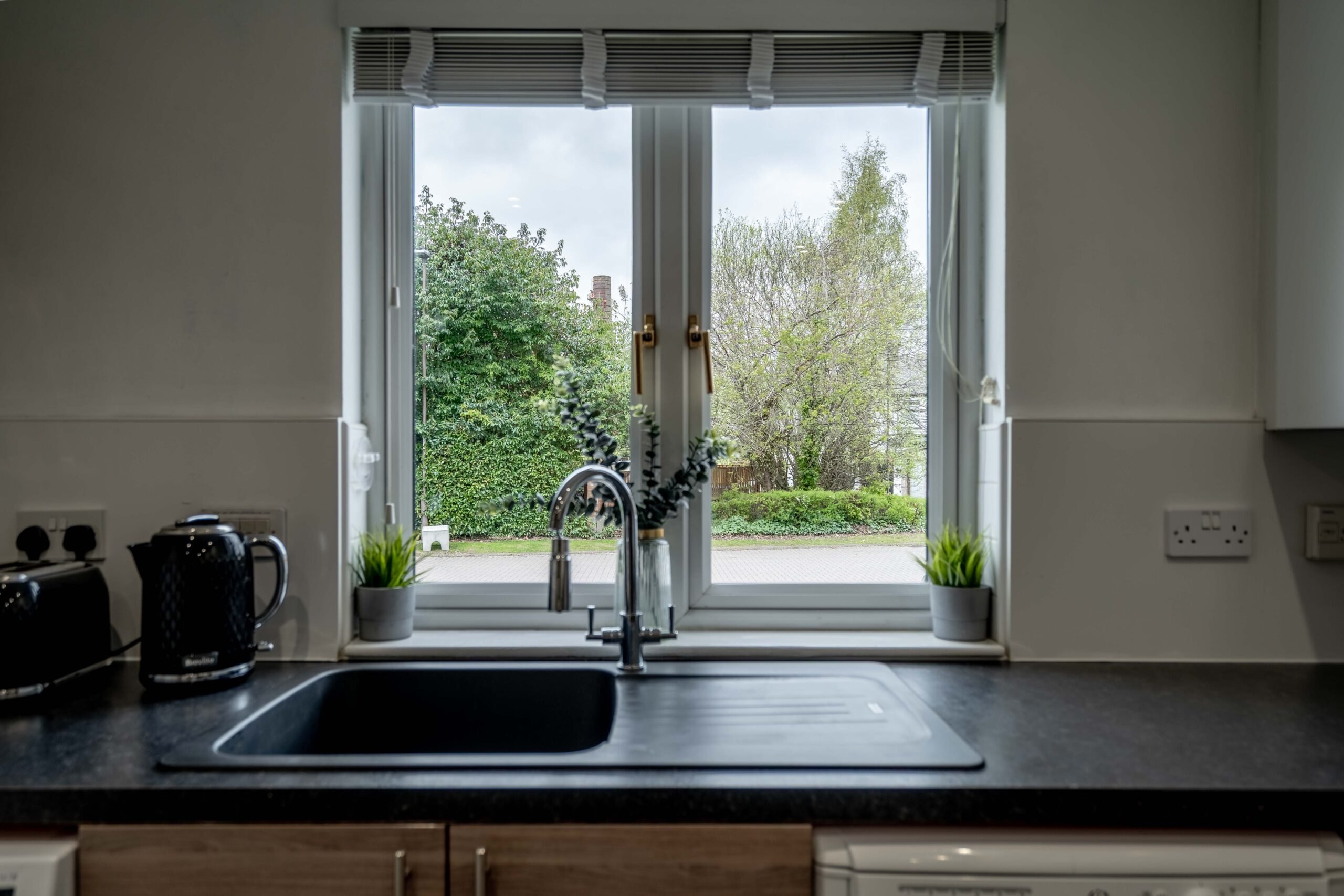 The kitchen is a well-maintained modern IKEA installation, offering practicality and ample storage. Upstairs, there are three well-proportioned bedrooms, including a principal bedroom with a modern en-suite shower room. Bedroom two benefits from a bespoke fitted wardrobe, while the main family bathroom has been recently upgraded with a freestanding bath and floor-mounted tap, creating a luxurious feel.
